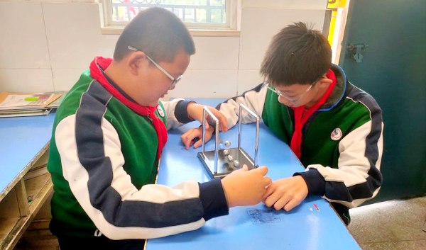 與此同時,教室內的物理科普小實驗同樣精彩紛呈。何君琦教授和大學生志愿者們帶領孩子們開展了趣味實驗,通過直觀的操作演示揭示了簡單的物理原理。孩子們踴躍參與,在動手實踐中“玩中學、學中悟”,進一步激發了對科學知識的探索欲。