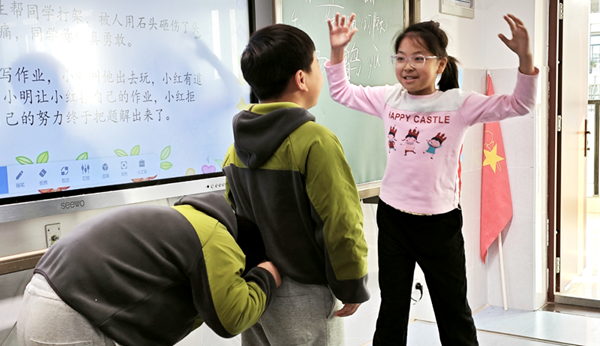 “體會勇敢”環(huán)節(jié)迎來了整堂課的高潮,各小組選取情境改編成小品,自編臺詞、分配角色并現(xiàn)場演出。有的小組演繹火災(zāi)逃生時冷靜報警求助,有的再現(xiàn)同學落水后呼叫大人施救而非貿(mào)然下水。有的演繹遇到壞人后,尋求陌生人幫助并機智逃生。表演后,師生共同點評:“勇敢≠魯莽,智慧+擔當=真勇敢。”寓教于樂的形式讓抽象概念變得具體可感。