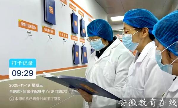在壽春路校區,黨總支專職副書記唐蓓、副校長陳蘊、總務處主任杜玫、張琴老師及膳食委員會家長代表一行,深入佰家伴配餐中心開展實地檢查。委員們細致查看了食材倉庫儲存條件、食品加工流程、餐具消毒設施及整體環境衛生,隨機抽查食材新鮮度與保質期,并詳細詢問從業人員健康管理與操作規范,實現“零距離”監督,全面掌握食堂運營實況。