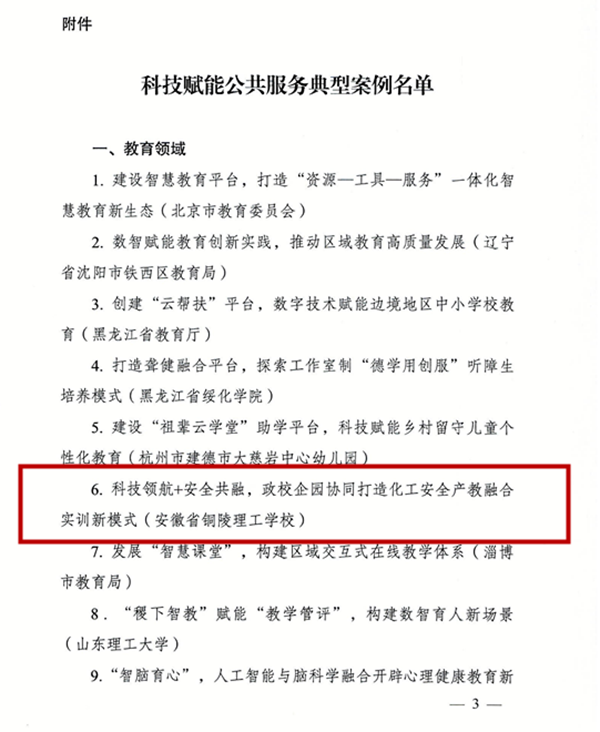 | 銅陵理工學校案例入選國家發改委等部門科技賦能公共服務典型案例名單 |