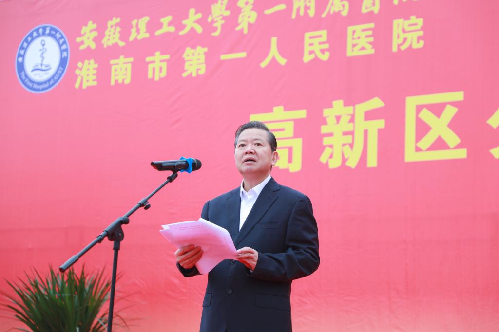 汪世福致辭 汪世福致辭。他代表市衛健委向高新區分院全面開診表示熱烈祝賀!他認為,高等醫學教育是醫療衛生事業可持續發展的動力源泉,淮南市第一人民醫院整建制劃轉至安徽理工大學,是深化市校合作大局和城市長遠發展的戰略選擇,是校醫融合、加快建設高水平綜合性大學的大事,是淮南市衛生健康事業發展中的要事,更是淮南市醫療衛生發展歷程中具有深遠意義的里程碑。他表示,市衛健委將一如既往地支持高新區分院的建設與發展,希望醫院憑借高尚的醫德、精湛的醫術、周到的服務為師生群眾提供高效便捷的醫療服務。