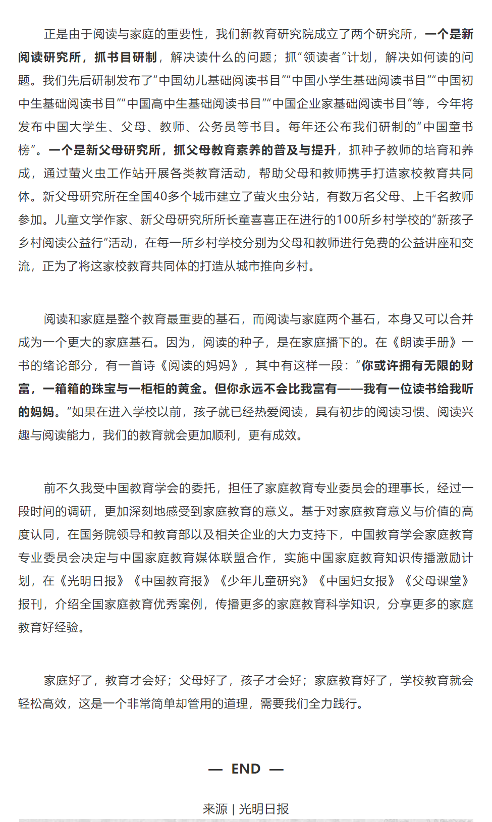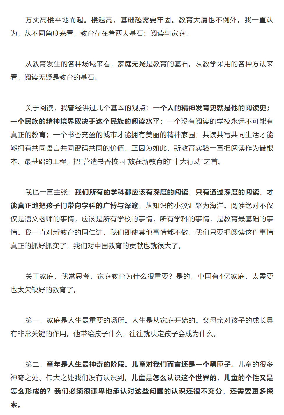 朱永新:教育存在著兩大基石——閱讀與家庭