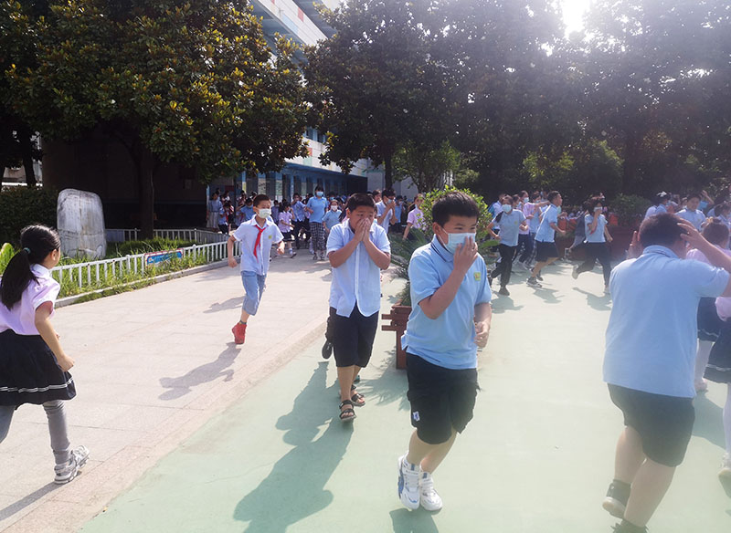 上午8點45分,刺耳的警報聲響起,消防逃生演練拉開序幕。同學們在老師的組織下,捂住鼻子和嘴,快速、有序地從各教室向操場安全地帶疏散,到達后,帶隊教師立即清點人員,確保每位學生的安全。